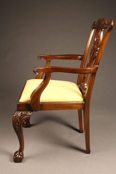 Set of 6 mahogany Chippendale style side chairs with ball and claw feet.
