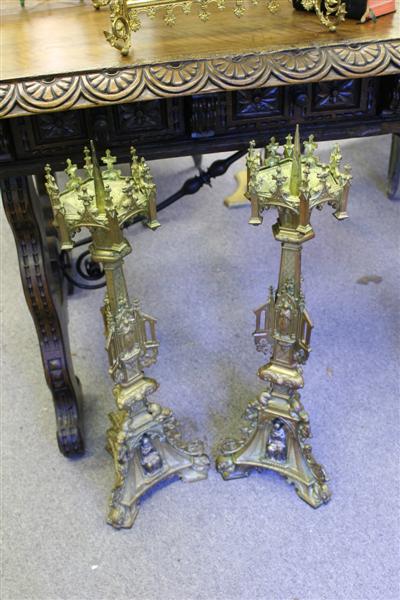 Pair of Italian silver gilt three candle candelabra