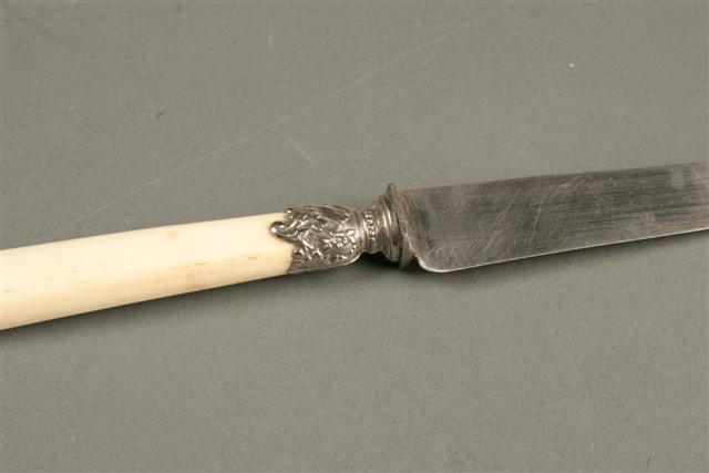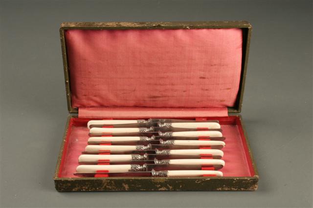 19th Century 12 piece silver and bone steak knife set with original case, circa 1870