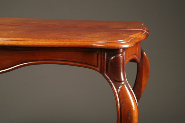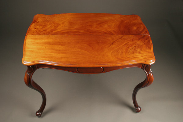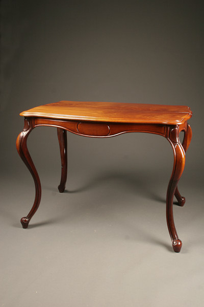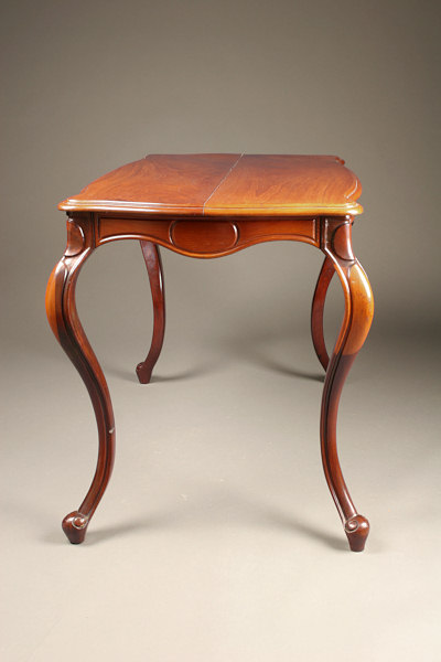 19th century antique French Napoleon III style table with cabriolet legs made in mahogany, circa 1870.