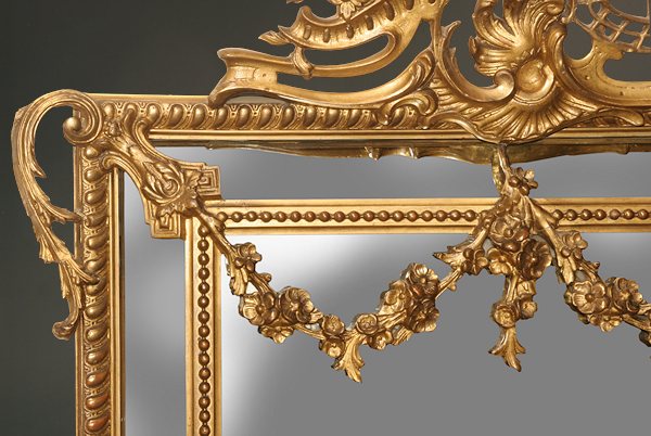 19th century Louis XV style gilded mirror with gilt garlands, circa 1880.