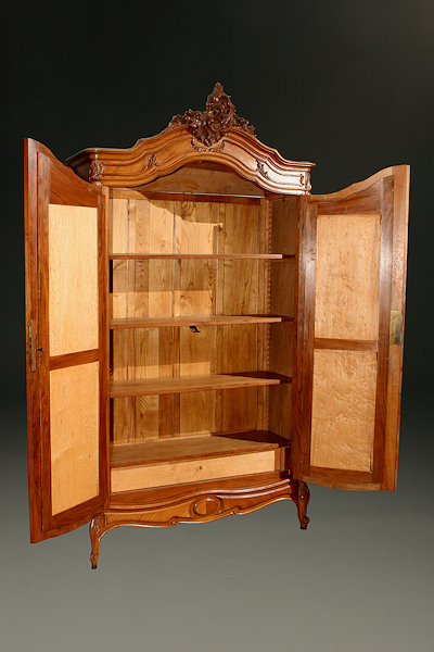 19th century French Louis XV hand carved walnut armoire, circa 1870
