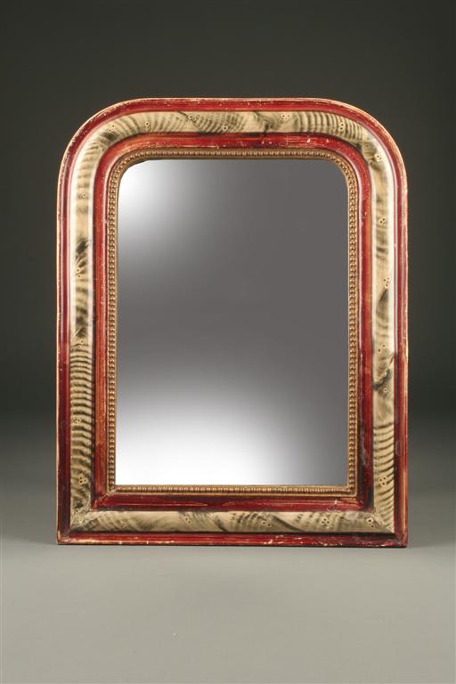 19th century French Louis Phillippe period mirror with red polychrome finish, circa 1860