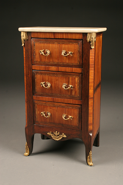 Rare French miniature lingerie chest with marble top. Circa 1870.