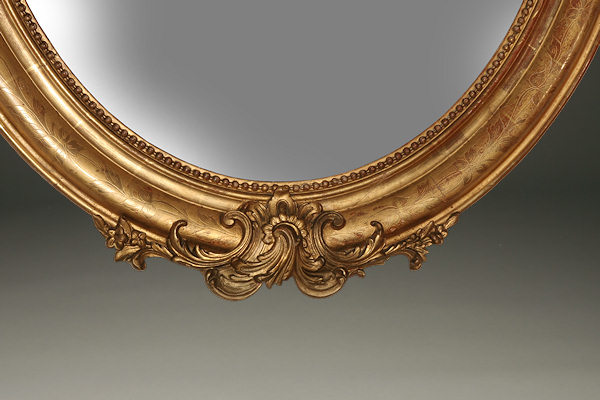 19th century French oval hand carved with gesso gilt mirror, circa 1870.