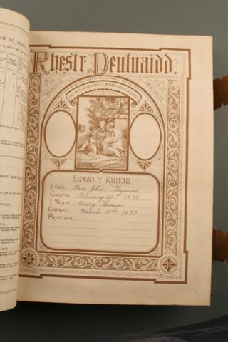 19th Century Welsh Bible with beautiful leather binding and brass hasps, circa 1870.