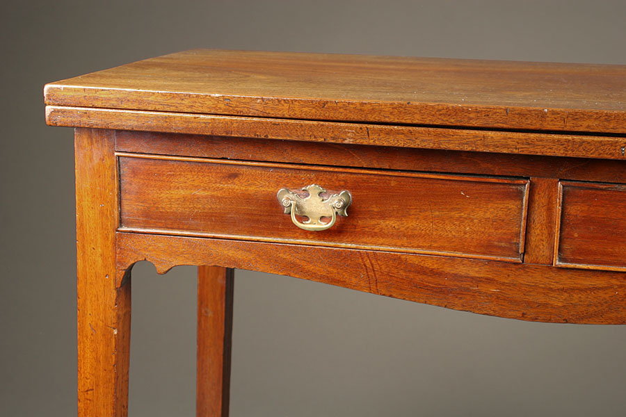 18th century period English Chippendale games table with swivel top and gateleg, circa 1790. The table is 17.5" closed and opens to 35.5" when opened.