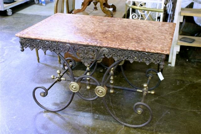 Antique French Custom cast iron bakers table with marble top