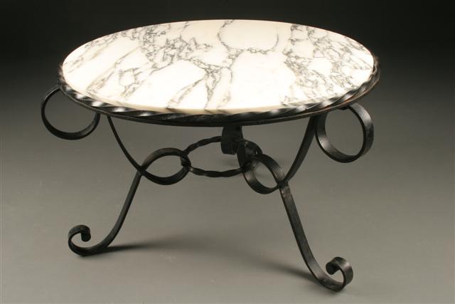 Antique French iron marble top tea table, circa 1895