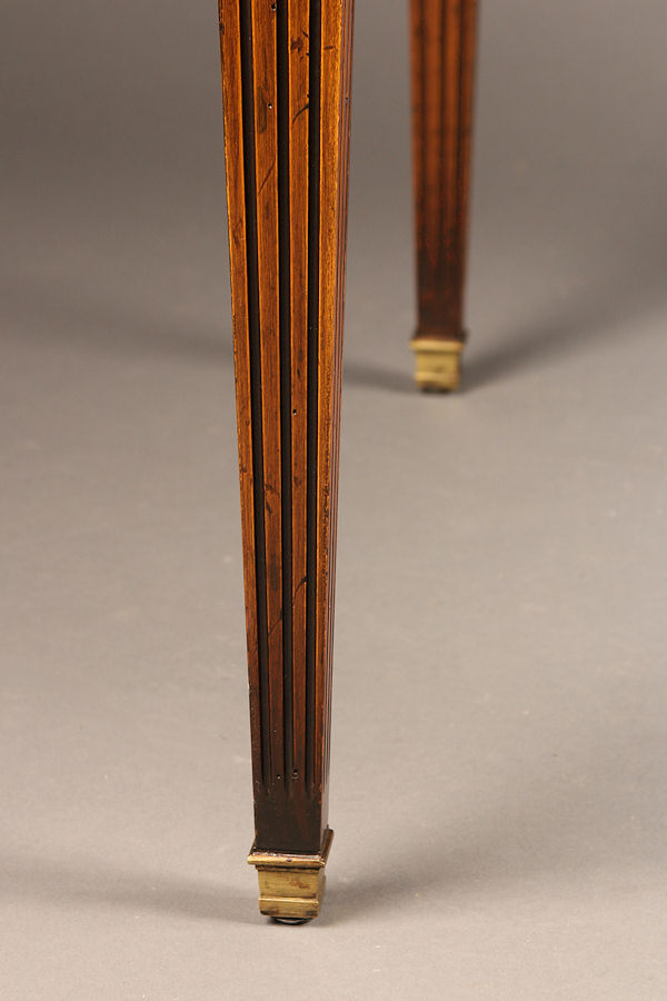 Antique French Louis XVI style mahogany end table with drawer and bronze border, circa 1930’s.