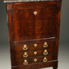 Custom English Carlton House desk in elm and burl elm with leather writing surface and brass hardware.