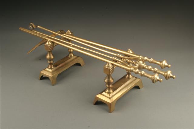 Mid 19th century Dutch five piece brass fire tool set, circa 1850.