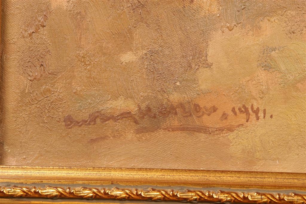 Dutch landscape of 18th century farm scene. Signed Anthony Keizer 1941. Typical of the genre.