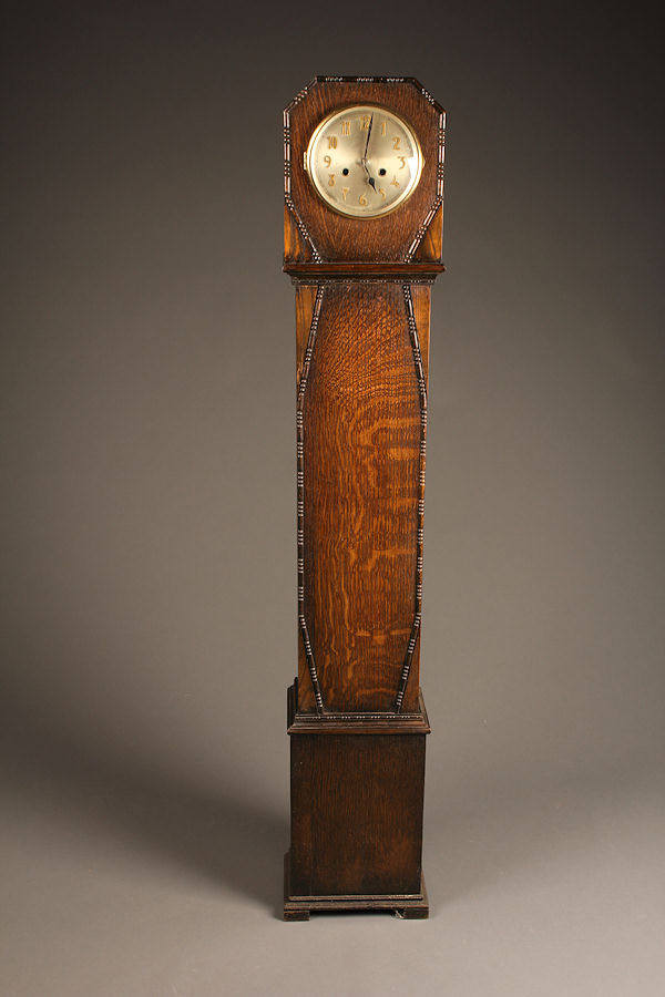 English Art Deco gandmother clock in oak case, circa 1920’s.