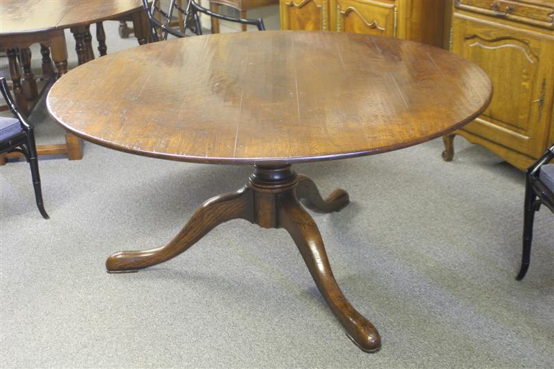 English oak pedestal table, custom made in 18th century style hand hewn and wood pegged