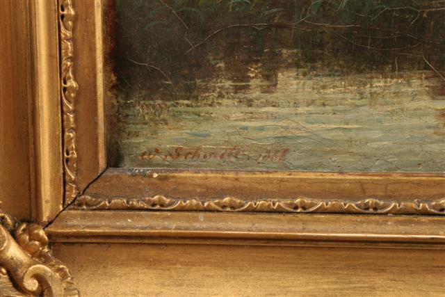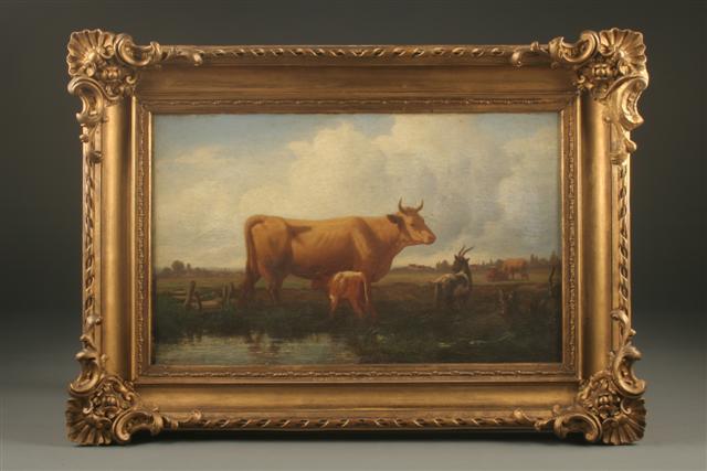 19th century European oil on canvasof cows and goat, signed and dated with Schmitt. Circa 1869