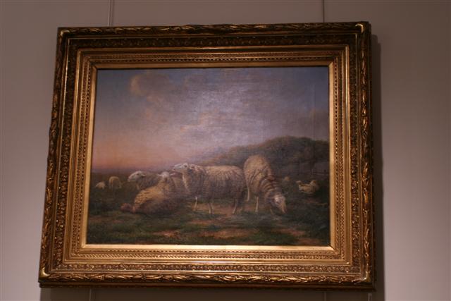 Oil on canvas by James Malcolm of Scottish highland cattle.