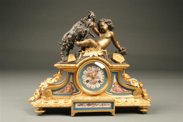 19th Century French bronze and sevres porcelain statue clock, signed Paris, circa 1850-60