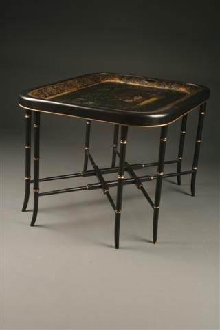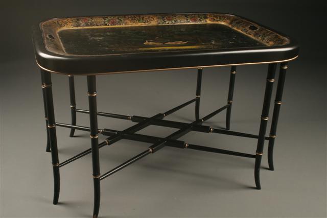 French Empire tea tray with geese on custom stand