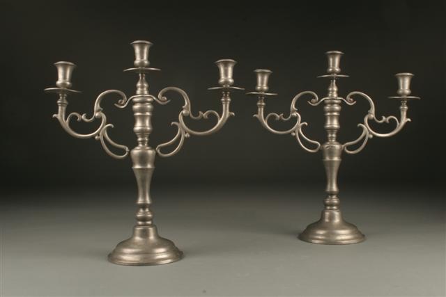 19th Century French Louis XIII style pair of pewter candelabra, circa 1870