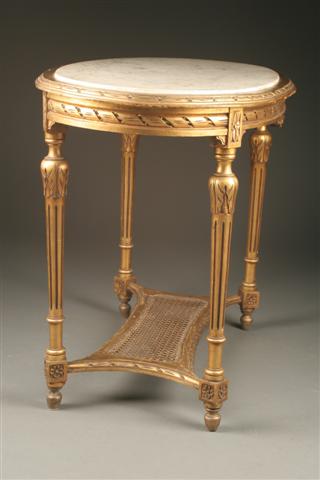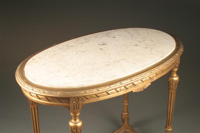 French Louis XVI gilded marble top oval lamp table