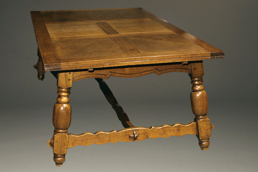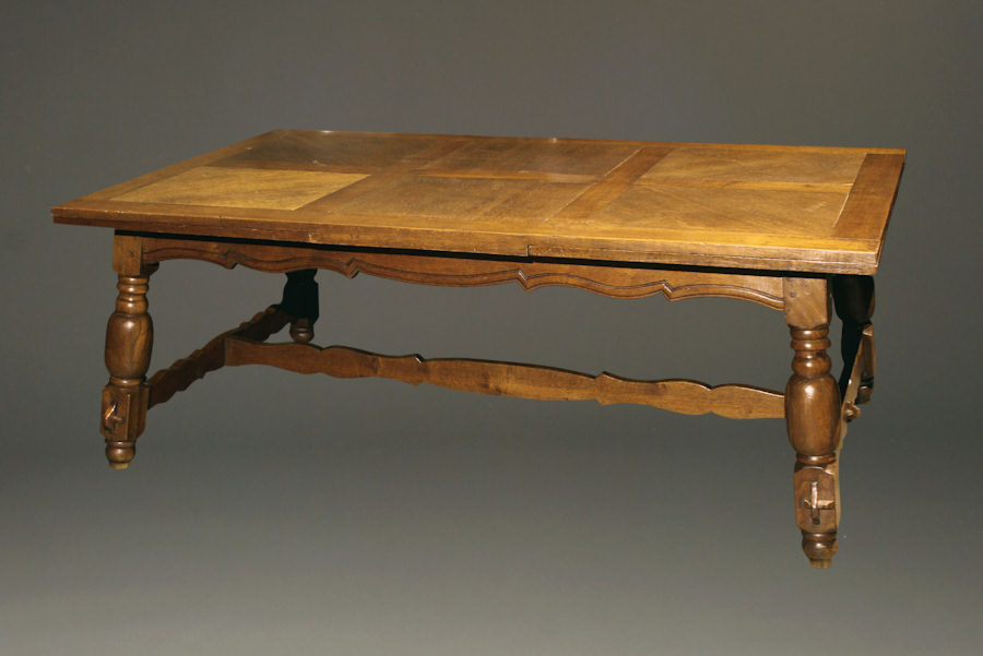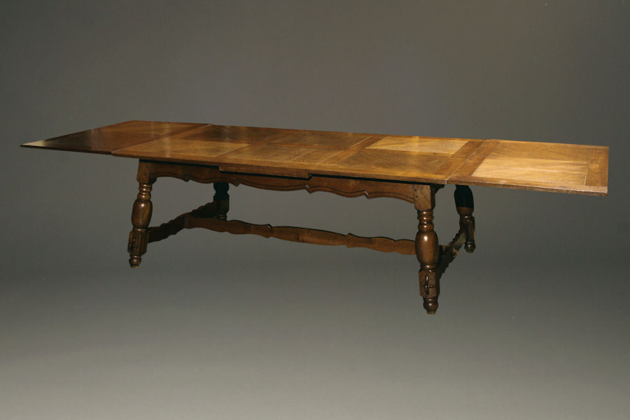 Late 19th century French oak draw leaf table from La Rochelle region of France, circa 1870. The table is 78 1/2" wide and opens to a total width of 136 1/2" when the two 29" leaves are extended.