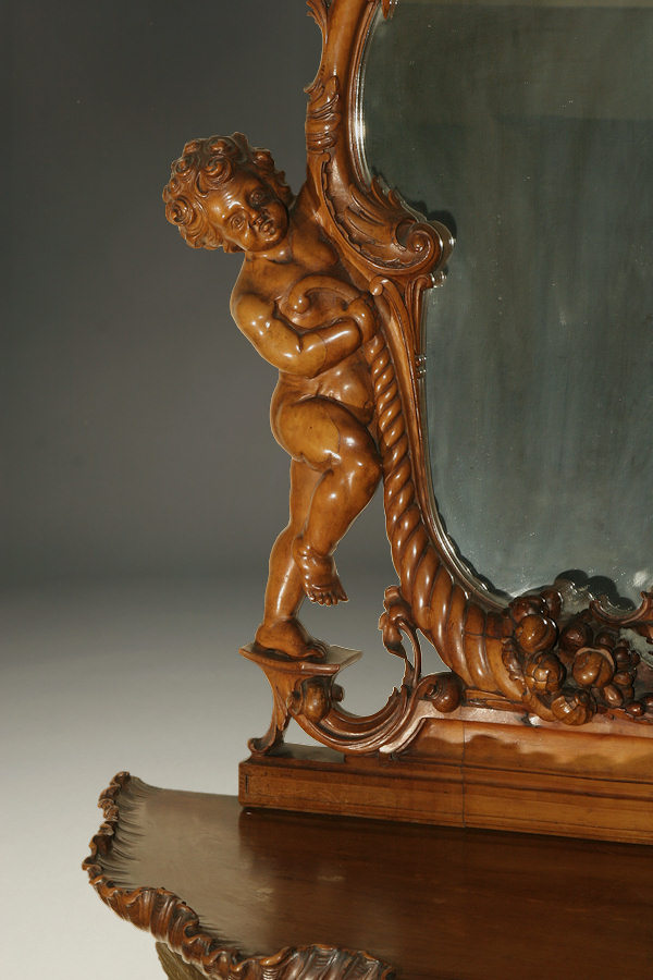 Italian gilded eagle console with carved cupid mirror, circa 1890