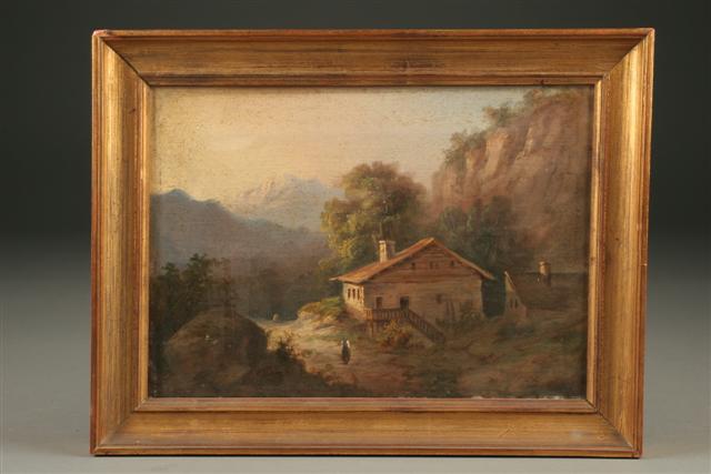 Oil on canvas of Alpine scene by Karl Marco.