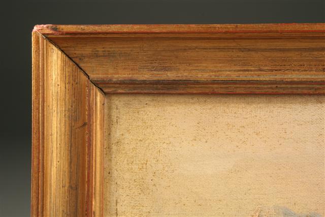 19th century oil on canvas of romantic French scene mounted on panel