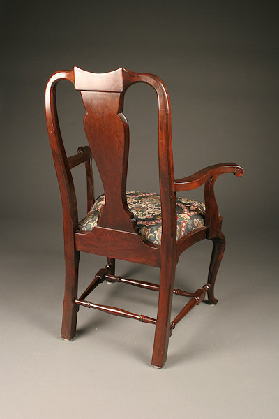 Late 19th century English Queen Anne style armchair made in mahogany. Circa 1890