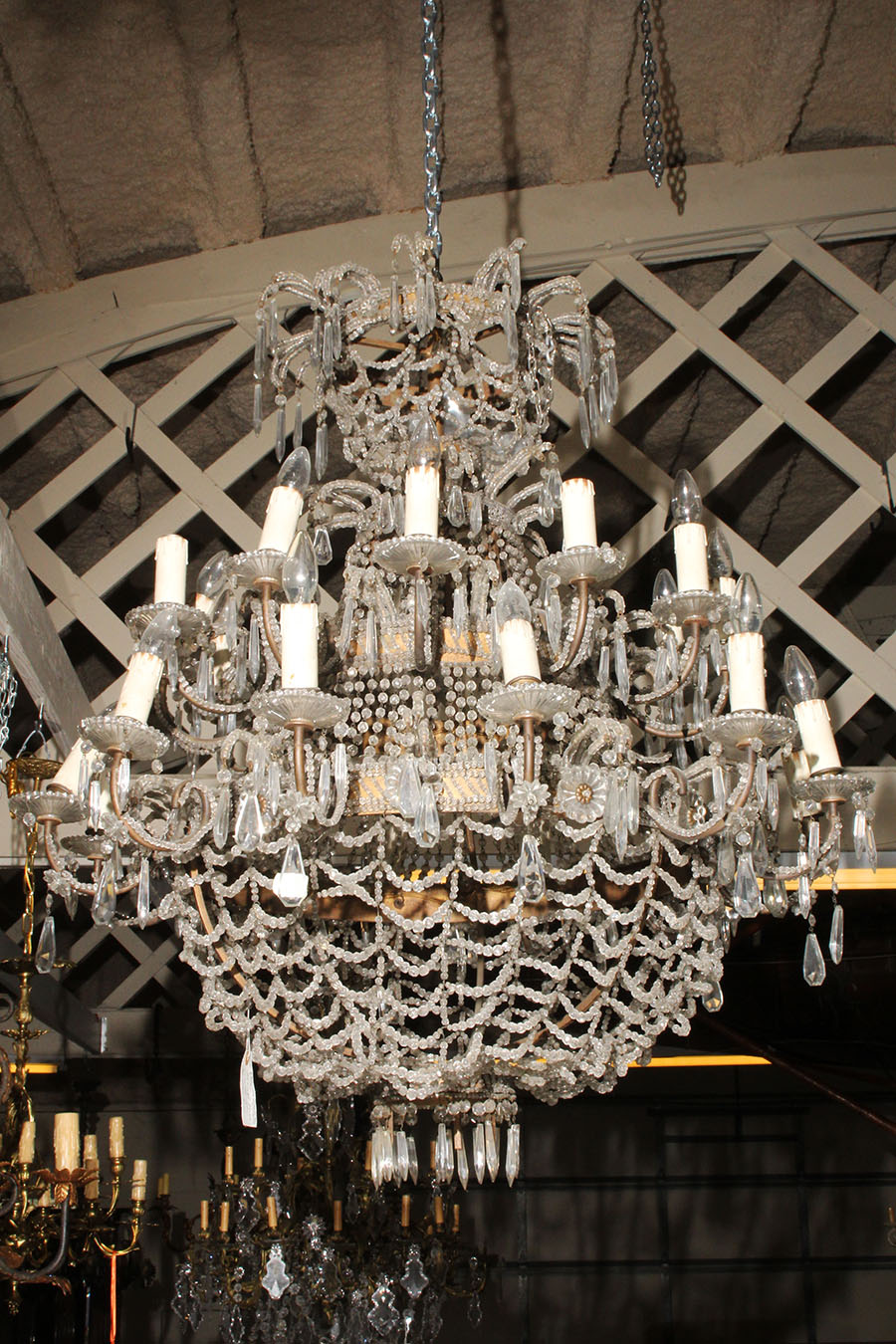 Magnificent 24 light Italian bronze and crystal chandelier.