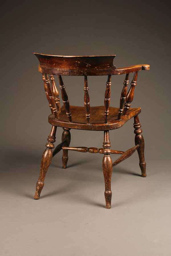 Mid 19th century English plank seat armchair in yew wood, circa 1860.