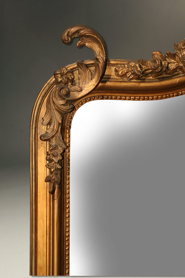 Mid 19th century French Louis XV style gilded mirrior with very ornate carvings, circa 1870.
