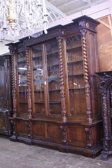 Monumental 19th century French hand carved bookcase in oak, circa 1870