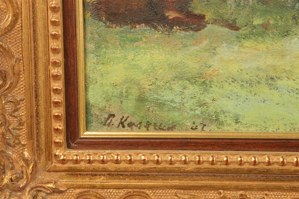 Pair of oil on boards depicting sheep , signed P. Schouten