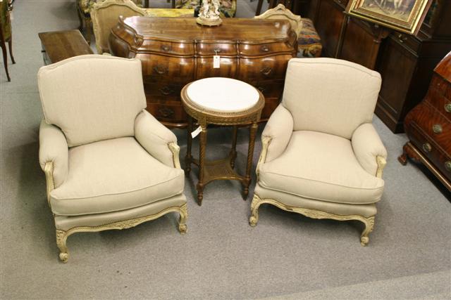 Pair of 1950´s French Louis XV Bergere chairs, reupholstered and overstuffed