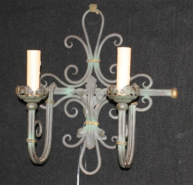 19th century Pair of two arm iron Belgique sconces, circa 1890