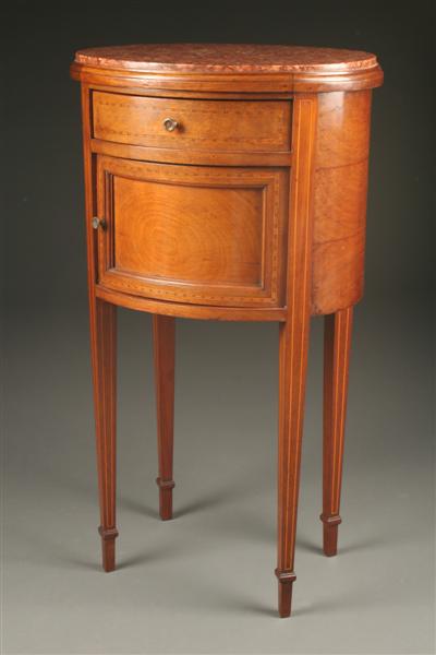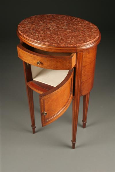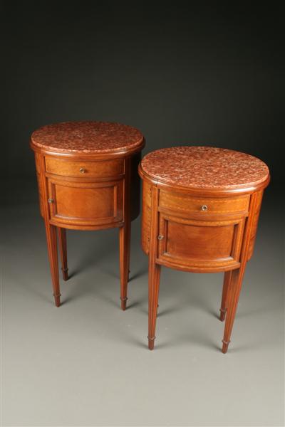 Pair of antique French oval Louis XVI marble top stands, circa1900