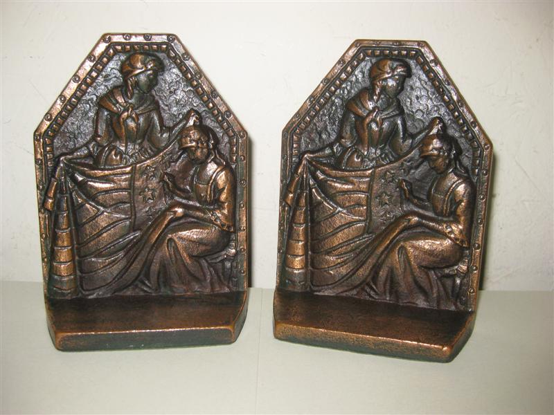Pair of bronze bookends with Betsy Ross, circa 1920´s