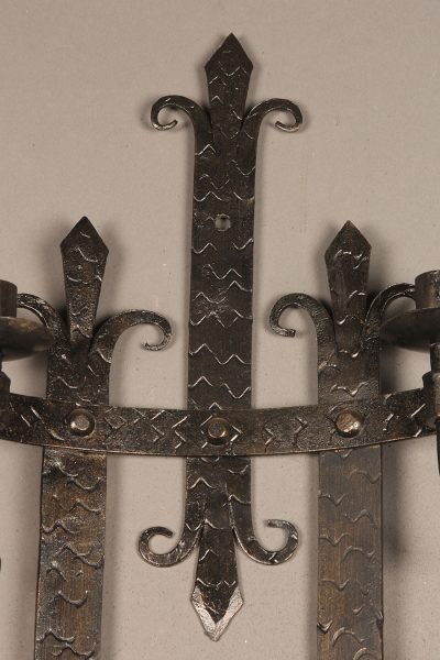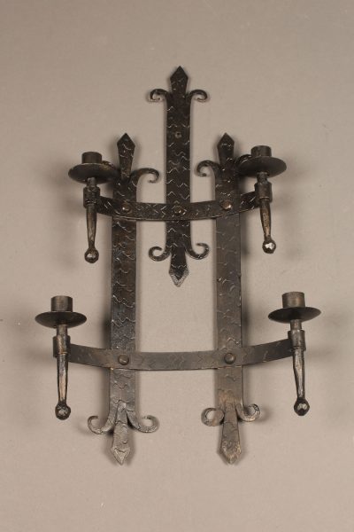 Pair of bronze sconces with porcelain flowers & mirror backs