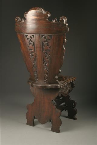 Pair of 19th Century carved Italian walnut Renaissance hall chairs, circa 1860