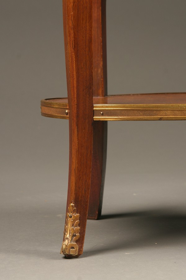 Pair of oval inlaid 3 drawer marble top French stands with bronze mounts, circa 1920´s.