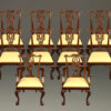 Rare set of 8 French Jacobean armchairs with green leather upholstery.