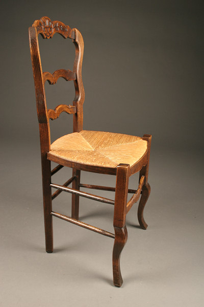 Set of 4 French Rustique chairs with rush seats in oak, circa 1880.