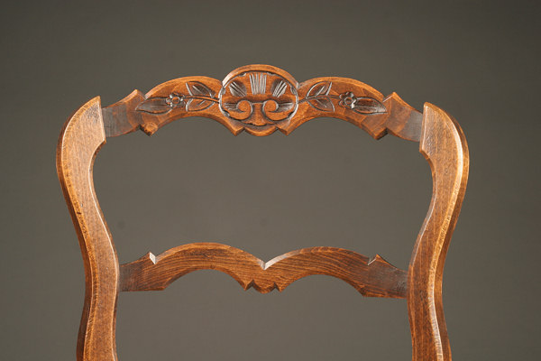 Set of 6 19th century antique French Louis XV high back side chairs.