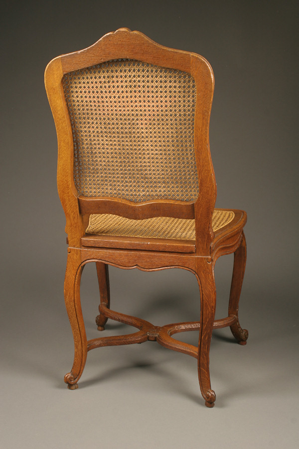 Late 19th century set of 6 antique oak Louis XV style side chairs with caned seats and backs, circa 1890.
