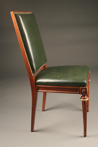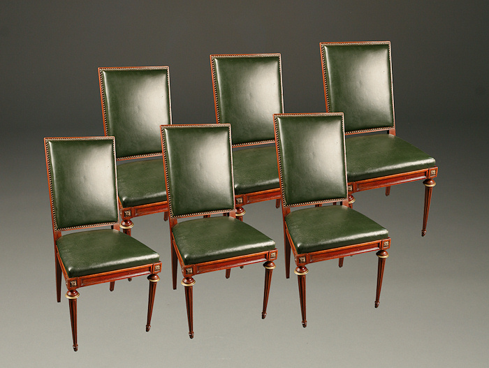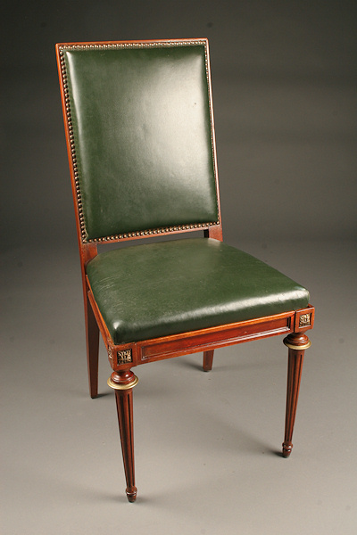 Set of six French classical style side chairs in mahogany with bronze mounts , circa 1890