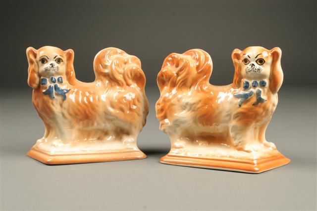 Pair of 19th Century Staffardshire King Charles Spaniel dogs, circa 1870