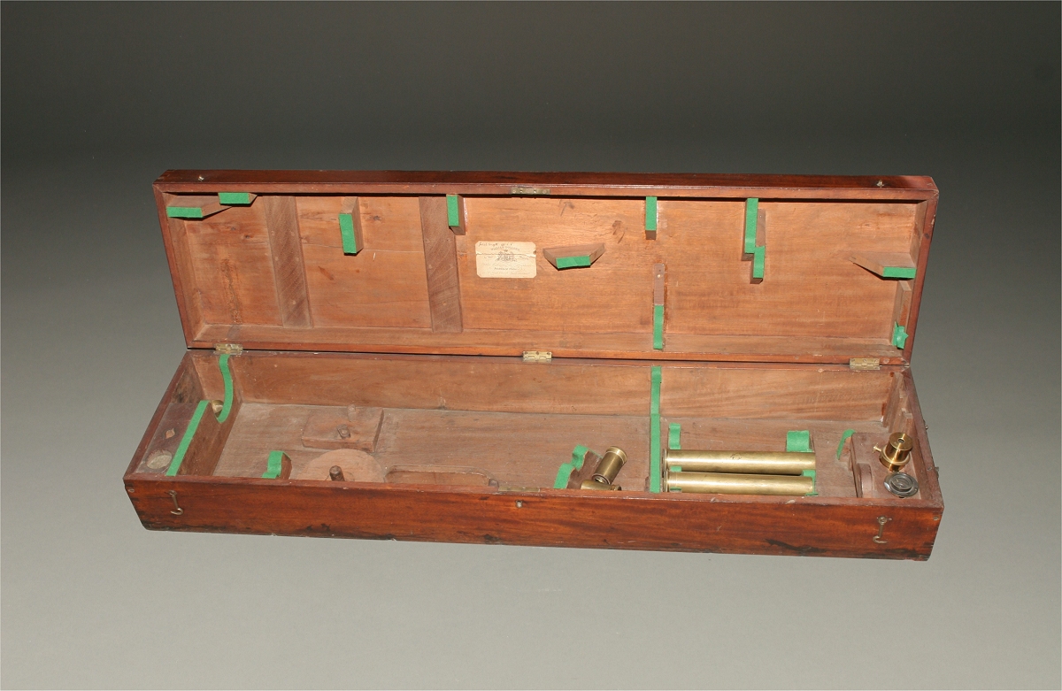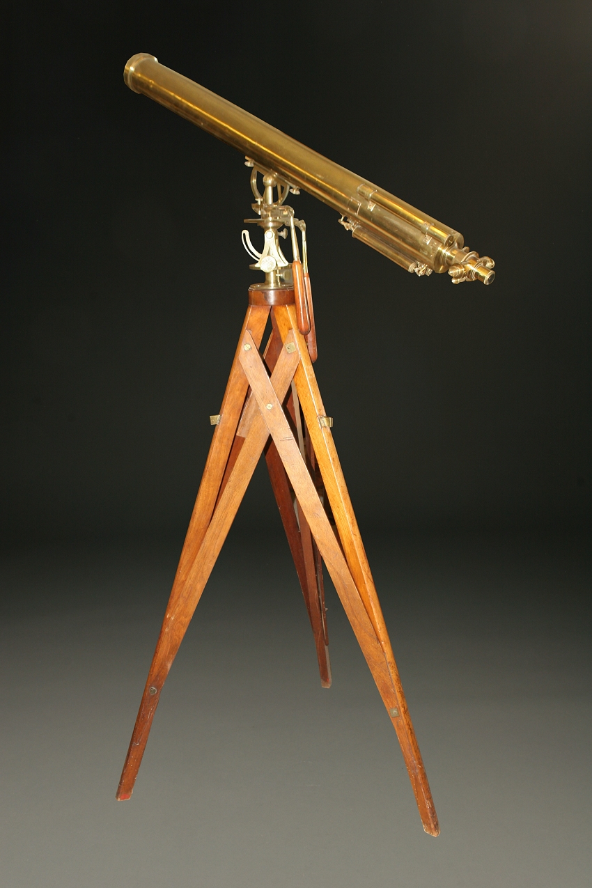 Fine English made telescope signed Dollond, London with stand and original mahogany case. Circa 1850.