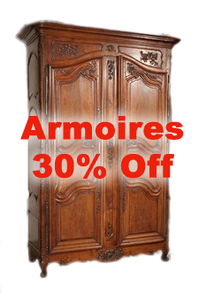 Our showrooms are full of unique, one of a kind antiques. We need to make room for more inventory. So take a moment to register and receive a 20% discount storewide or 30% off any armoire.